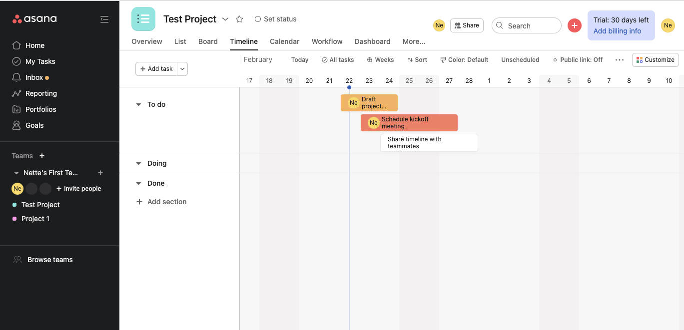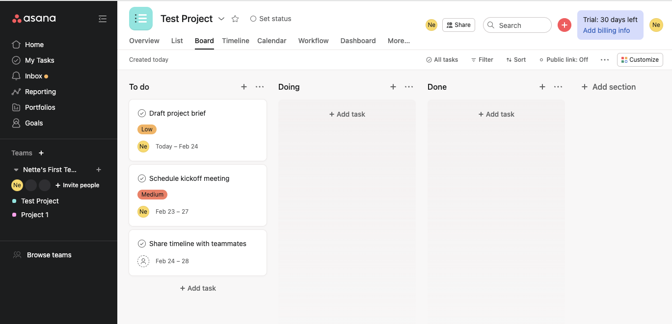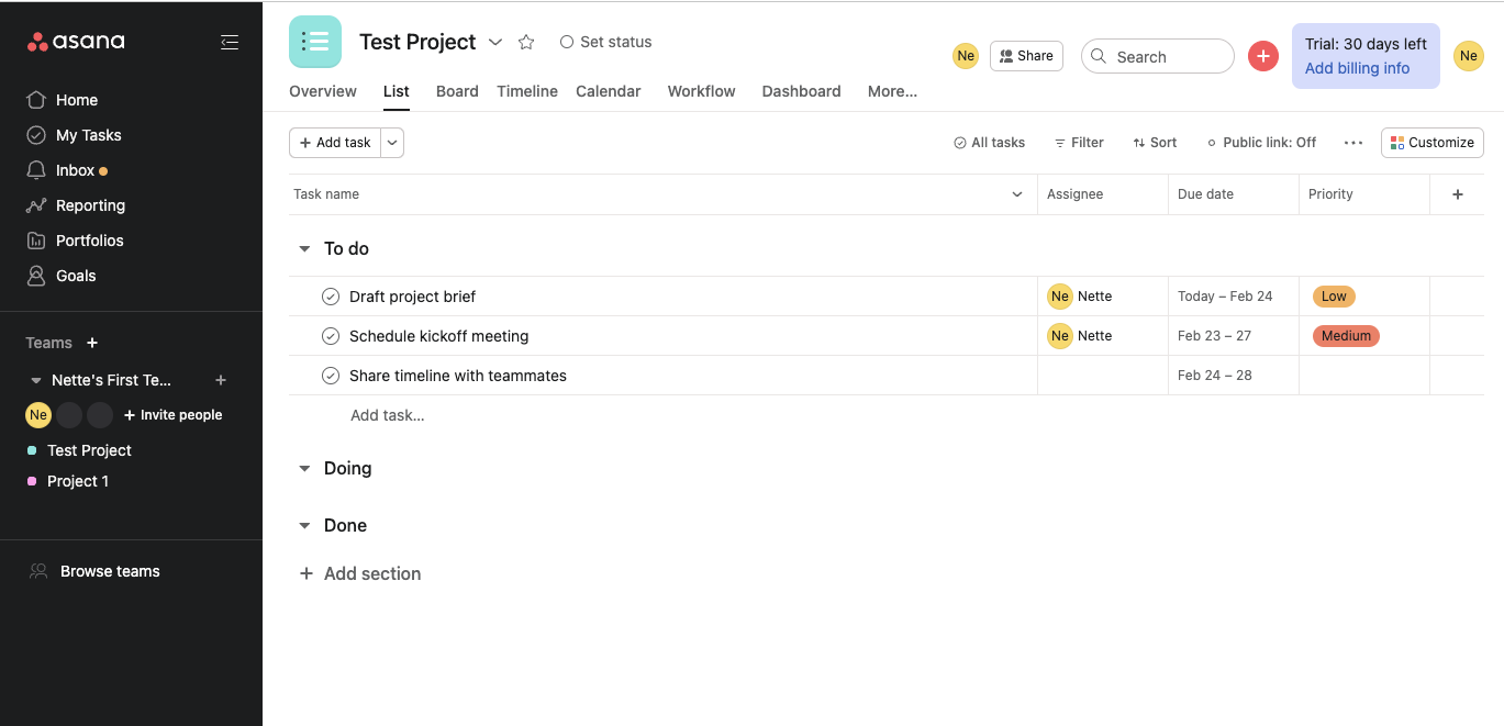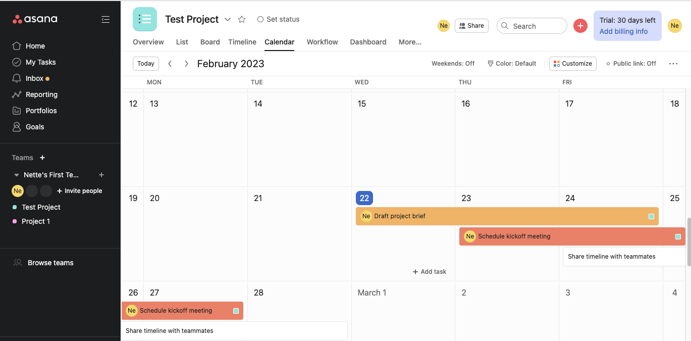 - Reporting and cross-team work are more built out in Asana, making it great for medium and larger teams