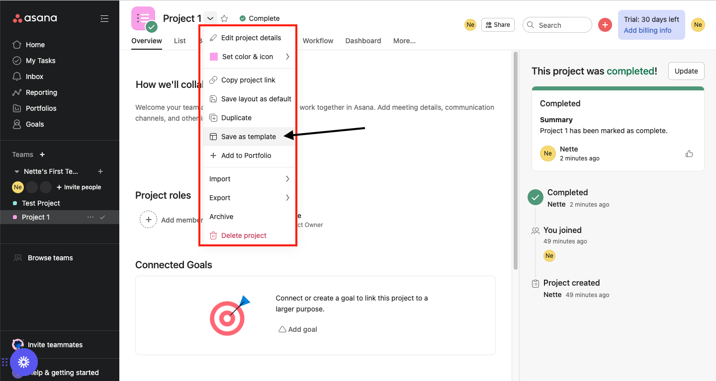 When a project is complete, a few of Asana's features can help with the close-out: