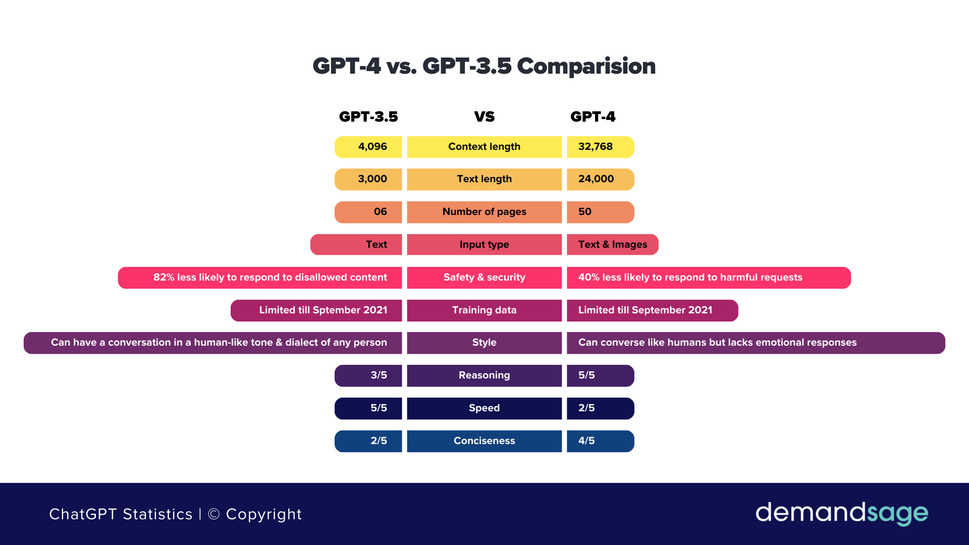 Here is a graphic comparison of ChatGPT-3.5 and ChatGPT-4 features: